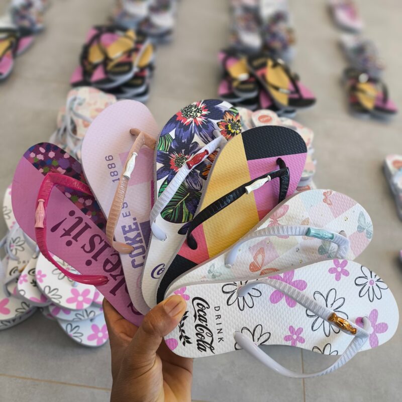 grade com 12 pares, 5 estampas diferentes. solado PVC micro expandido estampa no transfer digital numeração da grade 2 – 37/8 4 – 39/0 4 – 41/2 2 – 43/4