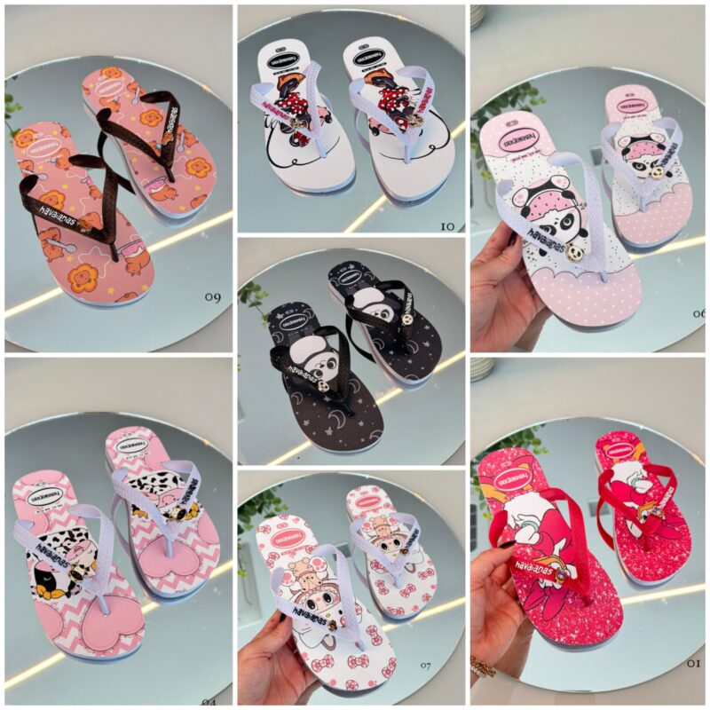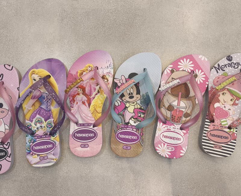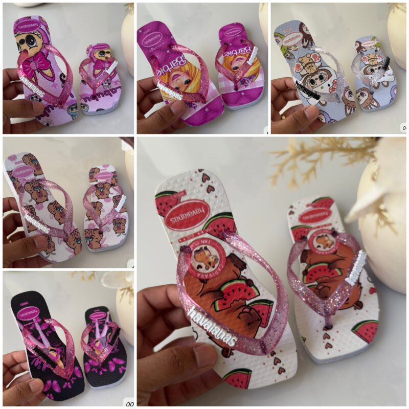 Havaianas Estilo Farm Personagens 🤍✨ Linha Premium -Solado micro expandido – Transfer digital – Pigente Resinado Grade com 12 pares e 7 estampas diferentes. Numeração da grade: 2 – 33/4 4 – 35/6 4 – 36/7 2 – 39/0
