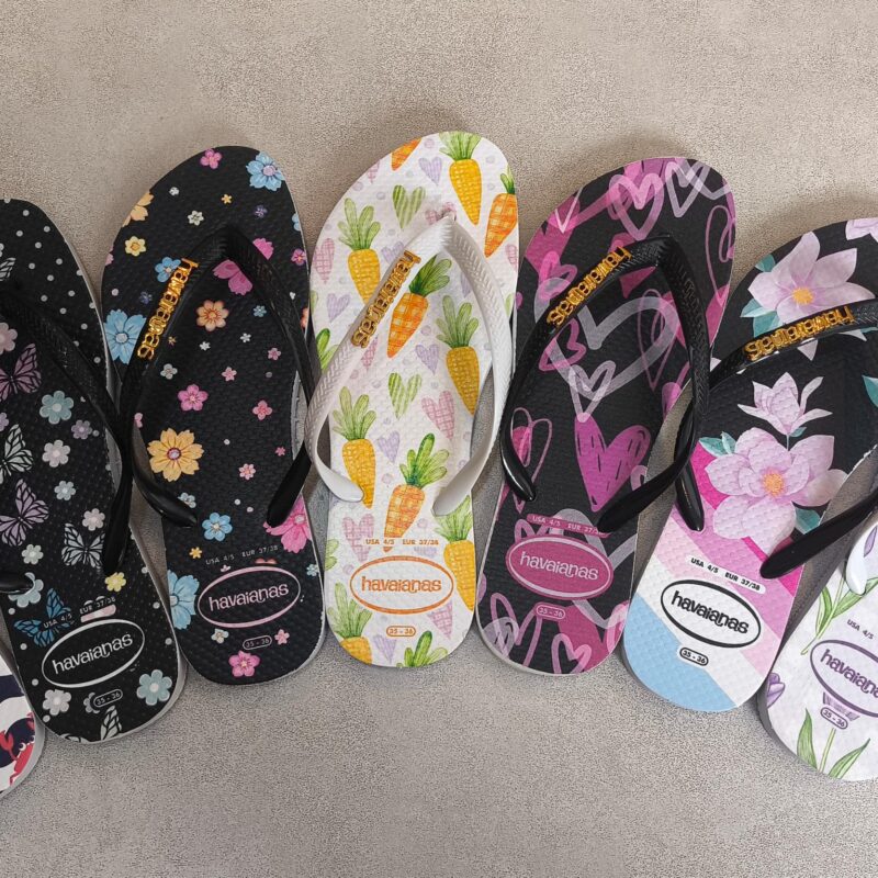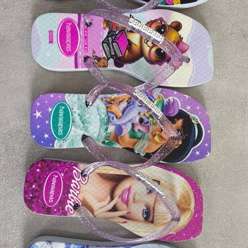 Grade com 12 pares, 6 estampas diferentes na grade. Sola redonda no PVC micro expandido. estampa no transfer digital. Numeração padrão de fábrica (não muda, não troca, não altera.) 3 – 25/6 3 – 27/8 3 – 29/0 3 – 31/2